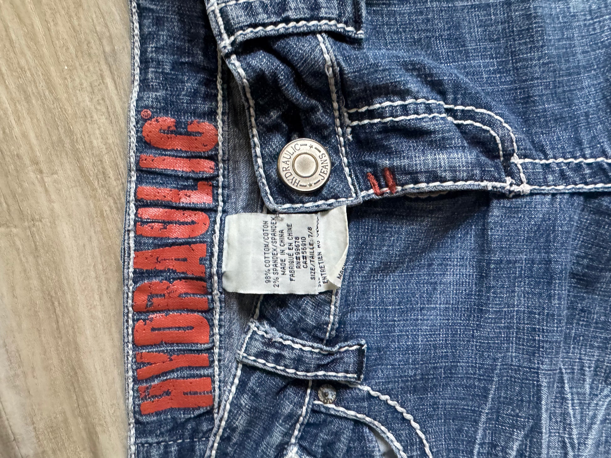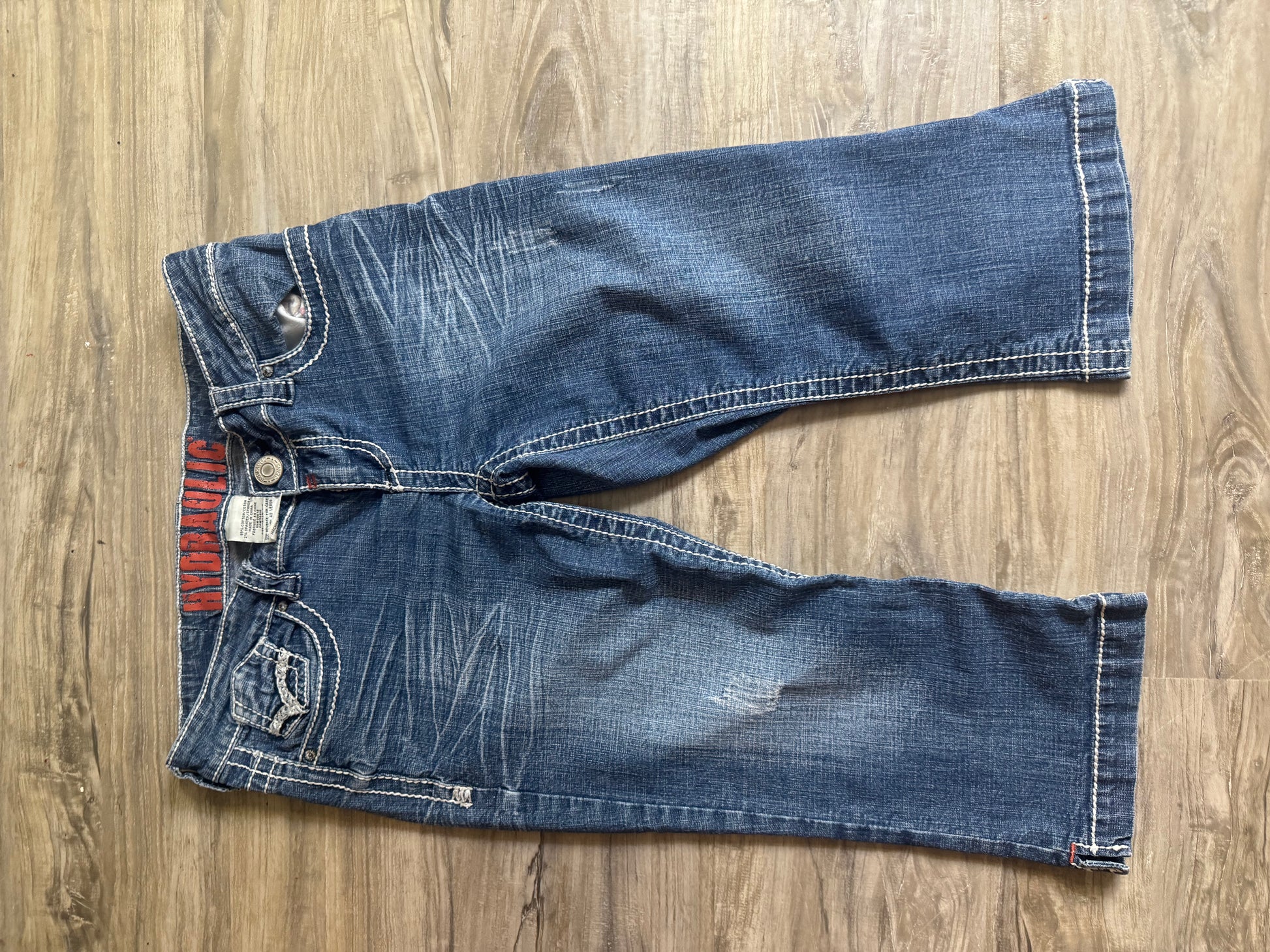 A pair of classic blue denim jeans with a slightly distressed look, featuring a relaxed fit and comfortable design, perfect for casual wear.